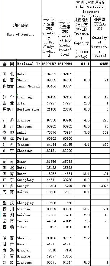 全國范圍內(nèi)對生活污水進(jìn)行處理的鄉(xiāng)3095個(gè),占比34.87%,污水處理廠2170個(gè),處理能力104.8萬立方米/日,污水處理裝置處理能98.80萬立方米/日,排水管網(wǎng)長度23536.98公里,年度新增2435.74公里。