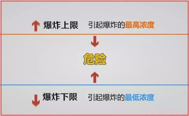 ②爆炸極限也稱爆炸濃度極限,是指可燃物質(可燃氣體、蒸氣和粉塵)與空氣(或氧氣)必須在一定的濃度范圍內均勻混合,形成預混氣,遇著火源才會發生爆炸,這個濃度范圍。