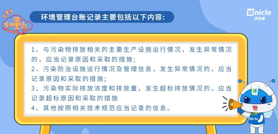 排污單位按照排污許可證規定的格式、內容和頻次,如實記錄環境管理臺賬,保存期限不得少于5年,超過5年的記錄應當掃描轉為電子存檔。應根據排污許可證中臺賬記錄要求的記錄信息進行記錄。記錄形式為電子臺賬和紙質臺賬。保存期限不少于3年,監測記錄信息保存不少于5年(危險廢物經營單位應當將臺賬記錄保存10年以上,以填埋方式處置危險廢物的臺賬記錄應當永久保存)。