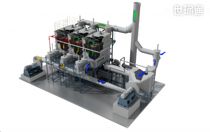 項目共計4套廢氣處理設備,使用5套納博科沸石轉輪,共計處理風量500000m3/h。