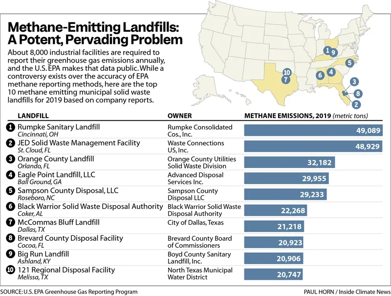 環(huán)境誠信項目的研究發(fā)現(xiàn),某些地區(qū)的垃圾填埋場甲烷排放量是官方估計的四倍。