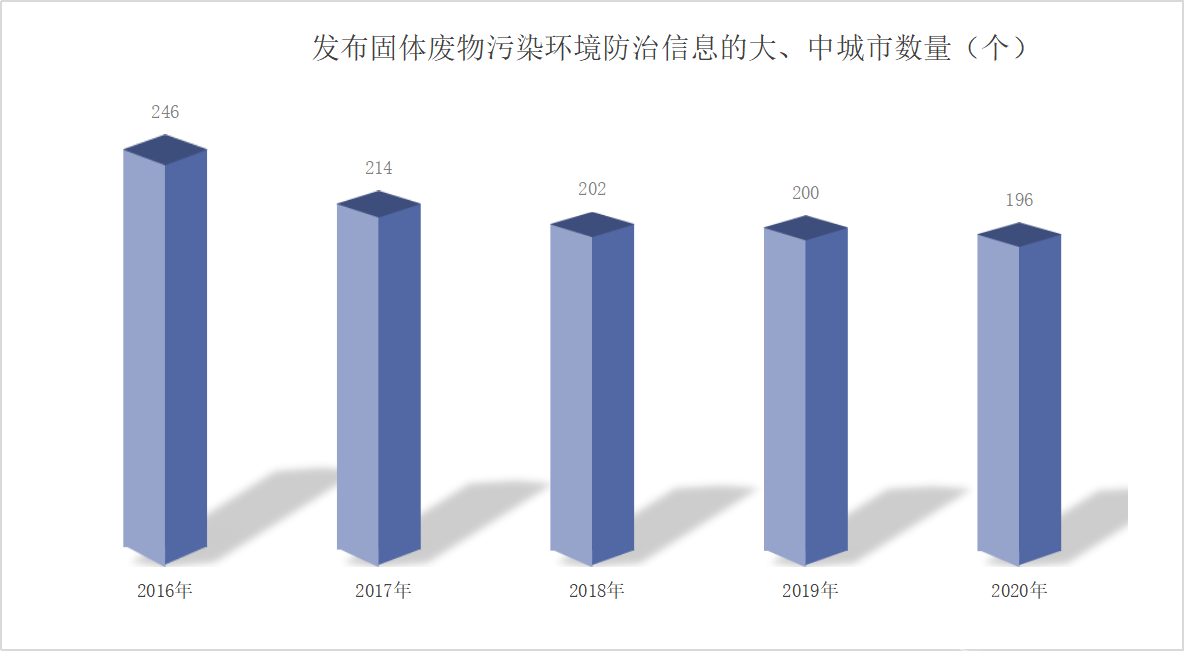 2、固體廢棄物信息化統計工作已經初見成效,近年來200個左右的大、中城市固體廢物處置公報越來越準確地反應出我國固廢污染防治以及固體廢棄物處理處置工作的進程。